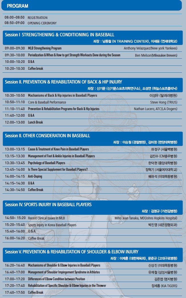 다가오는 12월 2일(일) 삼성서울병원에서 ”Baseball Sports Medicine International Symposium: STOP Baseball Sports Injury“을 주제로 제45차 정기세미나를 개최합니다.