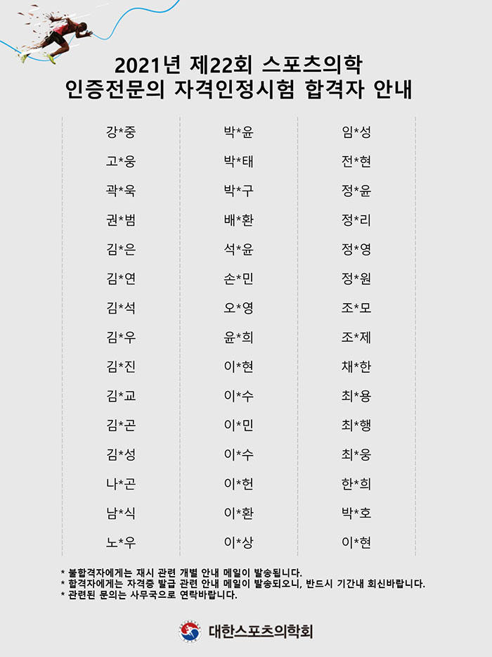 2021년 제22회 스포츠의학 인증전문의 자격인정시험 합격자 안내