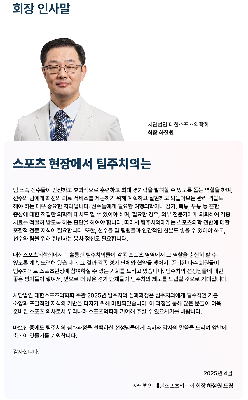 2025년 스포츠의학 팀주치의 심화교육과정